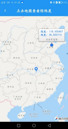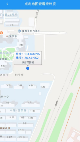 3、打开经纬度,随便点击地图中的一个位置,就可以清晰显示出经纬度。