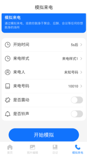 1、大家在模拟来电模块,可以随时开始模拟,非常方便。