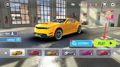 1、在车库界面选好赛车后,点击绿色PLAY按钮,即可进入城市赛车场景开始任务。