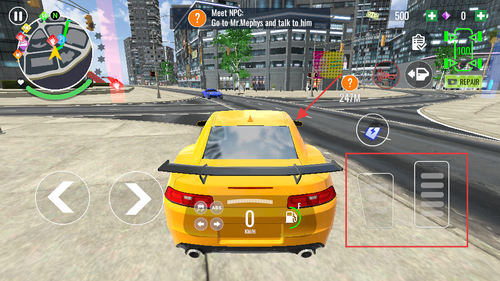 3、驾驶过程中借助右侧油门刹车等操作区域,在城市道路中控制赛车方向与行驶速度。