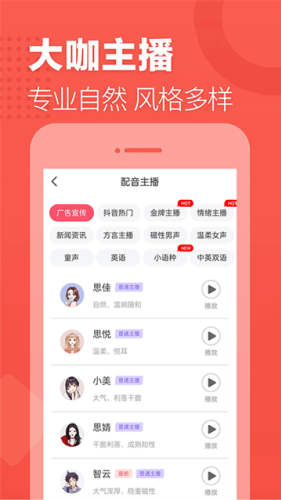 2、众多配音主播选择,总有一款你喜欢的声音让你沉醉。