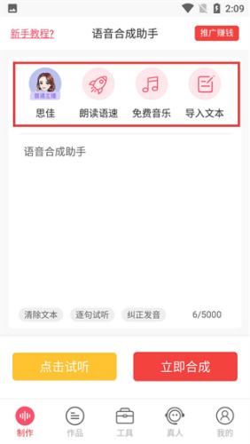 1、输入文字一键变为语音,让语音合成更方便,提高语音合成的效率。