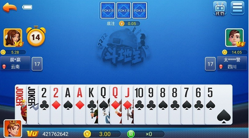 游戏内界面:进入具体游戏对局界面后,不同游戏的界面布局会有所差异,但基本元素相似。以斗地主为例,玩家的手牌整齐排列在屏幕下方,方便查看和操作。屏幕上方显示其他玩家的头像、昵称、剩余手牌数量以及当前出牌玩家信息。游戏区域中央展示出牌情况,包括玩家打出的牌型等。界面两侧设有操作按钮,如 “出牌”“不出”“加倍”“提示” 等按钮,玩家根据手牌情况和游戏进程点击相应按钮进行操作。在游戏过程中,伴有语音提示和动画效果,如出牌时有出牌动画,出牌成功或失败时有相应音效提示,增加游戏的趣味性和互动性。