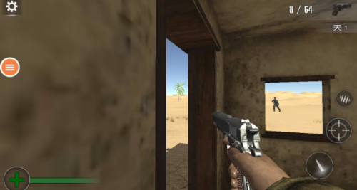 2、在查看周围的时候你看到外面有一个敌人,快点瞄准和射击。