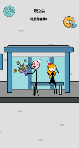 4、第三关你要利用橡皮擦擦掉蜜蜂,将美丽的花朵送给心爱的人。