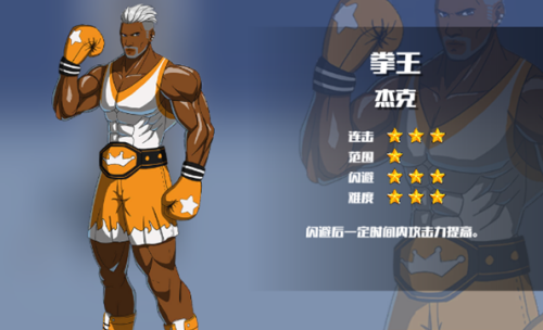 1、T0拳王(攻速快,连击能力好,打击感强,左右转向快,被动的存在让他可以灵活的进攻或防守,没有什么明显的缺点,硬说的话就是手短,不过可以靠走位和闪避弥补,本游唯一t0英雄)(被动决定了他的打法要更灵活多变,想玩好拳王就要把闪避的距离和时机控制好,用闪避快速接近敌人,打对面出其不意。在对战时,可以压对方的y轴,找机会闪进去抓背身,被对面连击的时候可以通过左右闪+超快攻速的平a来打反击。)