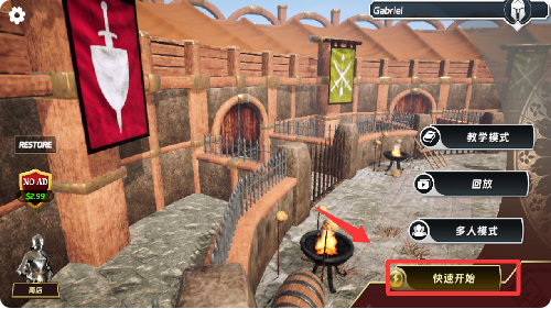 1、进入游戏界面点击快速开始。
