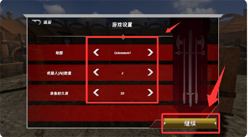 2、进入游戏设置选择好然后点击继续。