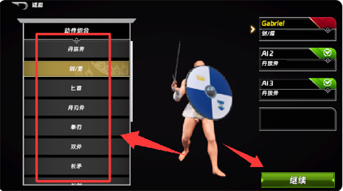 3、红色框框哪里可以挑选自己喜欢的武器然后点击继续。