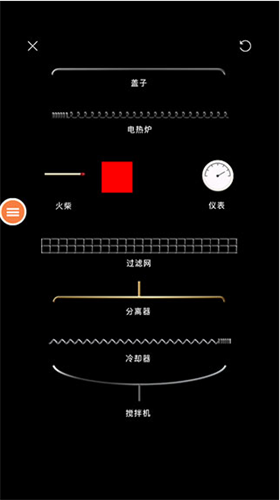 3、选好后,返回界面再点击左上角,可使用电热炉、盖子、火柴等实验器材,选择想要进行的操作。