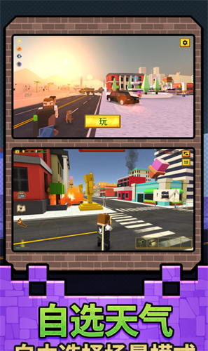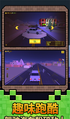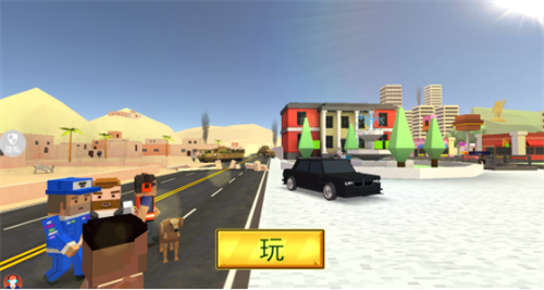 1、进入游戏后,你可以看到几个方块人和一辆汽车,点击玩。