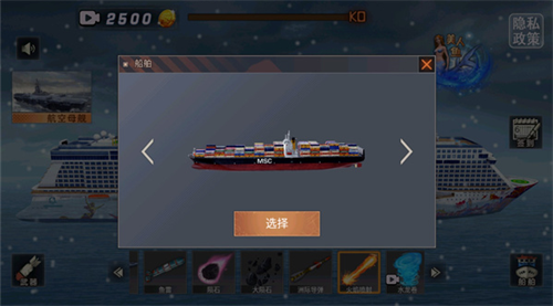 2、在开始游戏之前玩家可以选择自己喜欢的船只,选择完成之后,进行沉没;