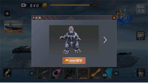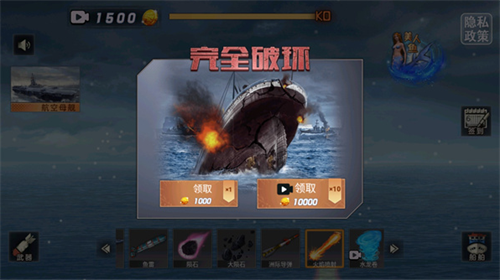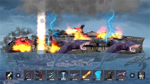 1、使用海怪、海神、水龙卷、洲际导弹等一系列超级武器来击沉大海中肆意捕捞的船只;
