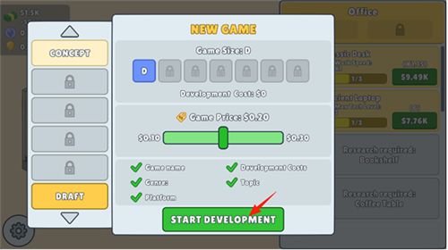 4、随后设置游戏的价格,点击屏幕下方的“START DEVELOPMENT”,开始开发。