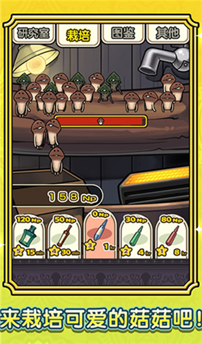 蘑菇花园中文版是一款休闲放置收集养成的模拟经营类游戏,玩家需要在花园内种植各种菇菇以及收获它们,来获得NP,NP还可以购买新的菇菇,在游戏中玩家需要种植不同的蘑菇,进行售卖兑换奖励。游戏为玩家提供了上百种不同种类的蘑菇,玩家需要用不同的方式将蘑菇种出来,不同的蘑菇单价也是不同的。游戏内还有多种种蘑菇要用到的工具,如灯、木头、加湿器等。此外,如果想要蘑菇生长速度快一点可以购买营养剂,可以加速蘑菇的生长。