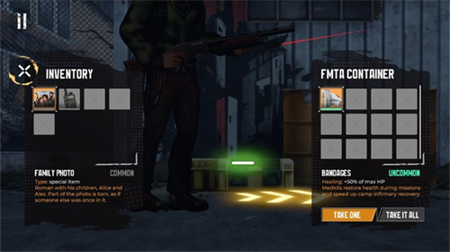 5、遇到可以互动的物品时可以进行搜索,可以选择带走部分物品或者全部物品。