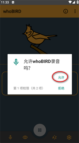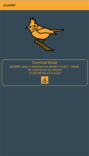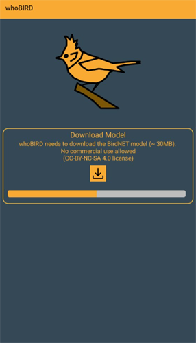 1、先在本站下载安装听声识鸟,打开后先要下载一个50mb的模型文件,需要获取手机上的录音权限。