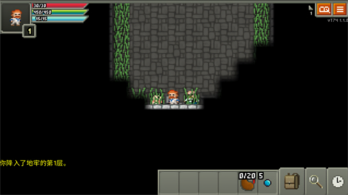 游戏的操作方式非常简单,玩家只需要点击屏幕就能让角色进行移动,点击出现在面前的敌人就能自动发起攻击,如果发现道具则会自动将道具收入到包裹之内。游戏界面的左下角按钮分别是“等待一个回合”,“搜寻身边范围”以及“针对一个目标的检查”,好好利用这些功能就能在地牢中发现意想不到的收获。