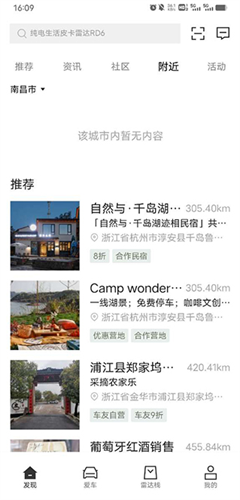 1、首页提供五个主要版块,分别是推荐、资讯、社区、附近和活动