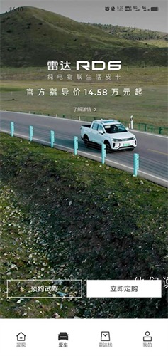 5、查看雷达新能源汽车的最新款,还可以预约试驾