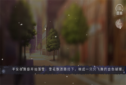 1、打开游戏,我们能够看到非常唯美的游戏画面,我们不着急开始,首先点击下右上角的菜单。