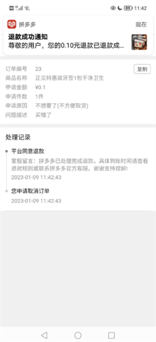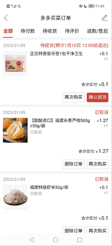 2、然后,在多多买菜订单中找到并点击“取消订单”选项;