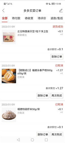 2、然后,在多多买菜订单中找到并点击你需要退款商品的商品;