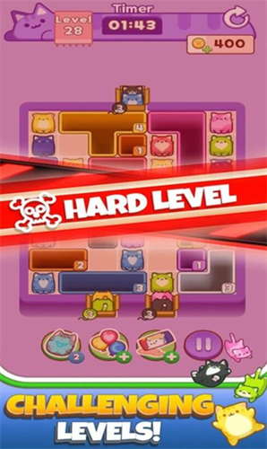 丰富多彩的猫视觉效果,令人上瘾的正方形拼图和聪明的逻辑谜题的完美融合。这个简单的益智游戏旨在轻松治愈,同时也是一个刺激大脑的游戏。如果你喜欢消灭游戏或想要一个伟大的益智游戏,你可以随时享受,这个游戏是你的完美选择。
