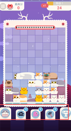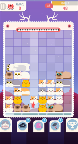 1、屏幕上有糖果颜色,小猫的表情很甜,落下的声音很温柔,不会给玩家带来压力。