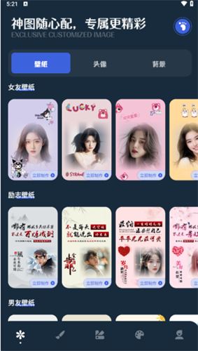 2、点击进入软件首页,有壁纸、头像、背景等诸多神图,用户可以选择使用。