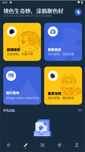 3、底部的填色板块,有趣味填色、相机取色、图片取色等诸多功能。
