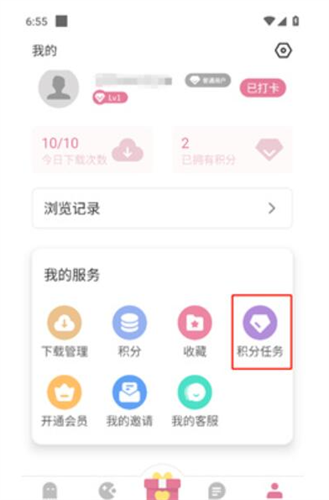 2、随后点击下图中的【积分任务】,根据任务需求做完就可以获得积分了;
