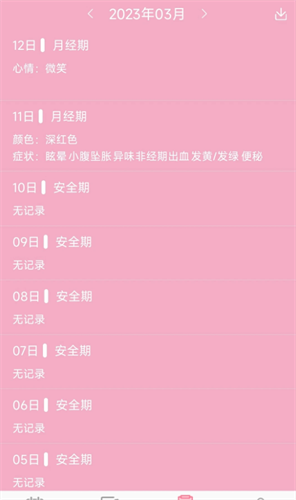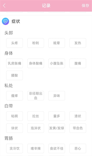 2、症状管理:支持记录50+种经期相关症状,提供个性化缓解建议。