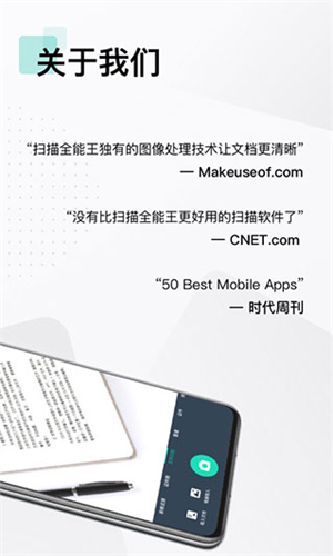 扫描全能王是一款由上海合合信息科技发展有限公司推出的手机扫描应用,它能让你的手机瞬间变成一个迷你的扫描仪,快速扫描图片或者文档,而且扫描的效果胜过一般的台式扫描仪,有了它就等于把一个专业的扫描仪随身携带,使你的工作效率大大提升。