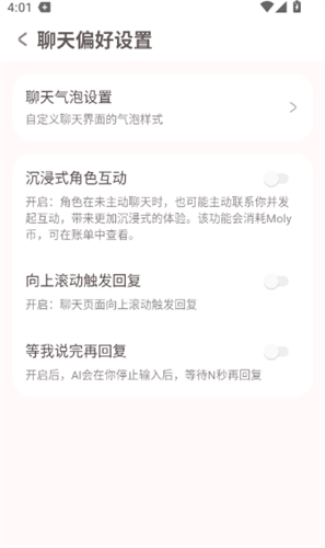 4.之后在新的功能菜单界面,点击“聊天气泡”功能设置按键点入