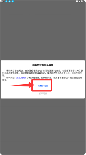 1、浏览服务协议及隐私政策,点击同意后继续。