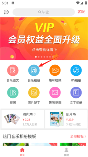 1、打开留影音乐相册,在首页点击音乐相册功能;