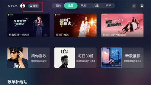 1、在本站免费下载qq音乐tv版,打开后可以看到“搜索”框。