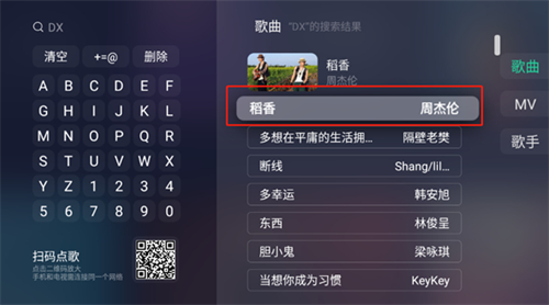 3、以“稻香”为例,输入歌名首字母即可。