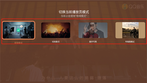 6、还可以选择“播放页模式”,其中包括:视频模式、动效歌词、歌手写真、专辑图模式。