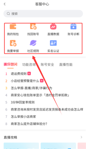 2、客服中心整合了个人钱包管理账号找回服务直播数据查询不良内容举报及社区规则查阅等综合支持功能。