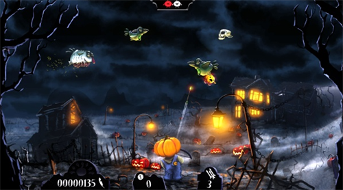当有叼着南瓜宝宝的僵尸鸟从屏幕的右侧向左侧飞行时,一定记得先救宝宝们,然后再去射击前去抓南瓜宝宝的僵尸鸟。