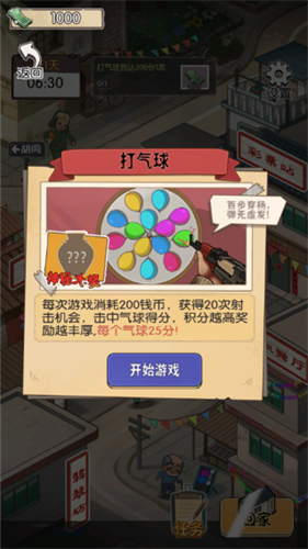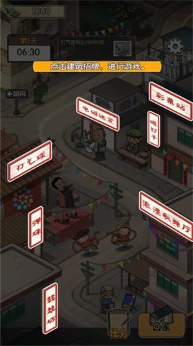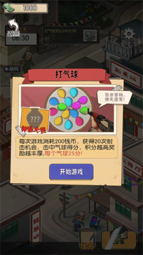 记忆中的庙会游戏破解版免广告是一款怀旧风格的模拟手游,让你体验传统中国文化的游戏,本作中,玩家将会穿越时空,回到小时候那个热闹的庙会,融入了许许多多8090后的回忆,体验丰富的路边游戏,如打气球、砸钉子、弹珠等,带给你真实的逛庙会体验。游戏中,玩家将会成为王建国,你需要通过庙会中各种各样的路边游戏来赚取钞票,比如在打气球游戏中,你射中的气球越多,奖励越丰富;在砸钉子游戏中,你砸的钉子越多,得分越高,奖励也越高。你通过街边游戏得到的奖励可以用来升级自己的家居,给老婆带来幸福的生活。此外,记忆中的庙会的画风也非常的精美,游戏精细绘制了庙会的各类建筑、摊位、人物形象等,还原和传统庙会的场景,力求让玩家身临其境感受庙会的热闹与喧嚣。