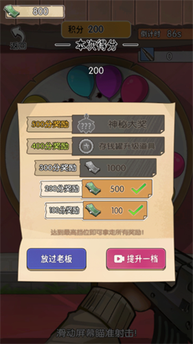 8、之后根据你射击的气球开始打分,200分将有500元奖励;