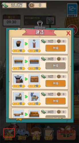 11、最后点击回家,然后点击建造,升级自己的家具。