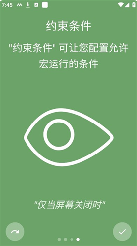 macrodroid触发器中文版即智能触发器app,适合喜欢折腾安卓手机的用户,macrodroid终身免费版是手机定时自动执行任务软件,就是大家所喜欢的安卓手机自动运行的app软件,堪称安卓自动化指令软件。能够自动化指令,让你手机变得无所不能,一款主打自动宏相关功能的软件,可以根据GPS基站、WIFI、动作等等各种手机传感器运作来设定条件制作宏运行的软件。可以用此功能来完成钉钉上下班的自动打卡,具体教程请看下文哦,赶快来下载试试吧!