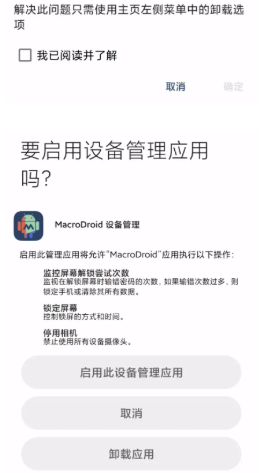 另外需要注意的问题是,有的功能需要用到设备管理员的权限,在授予之后,软件将无法卸载,如果你上手玩了几天,授予了一些权限,然后卸载的时候不知道去哪里取消,直接进软件的侧边栏点击卸载就行。