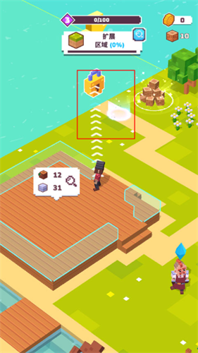 4、完成一个小目标,会奖励区域扩展,我们需要去砍伐更多的树木来建造;