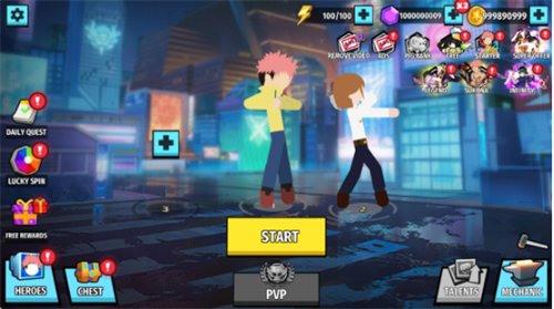 游戏极大程度的还原了咒术回战中的角色,搭配上火柴人动作系统以及犀利招数效果,让玩家有一个爽快带感的战斗体验。是一款十分还原且爽快的火柴人格斗游戏。