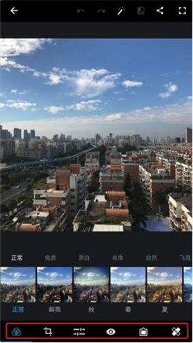 3、直接使用底部的工具栏进行修图。